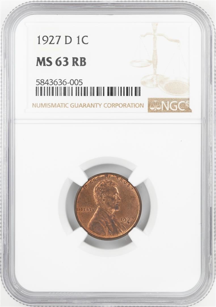 One 1927-D Lincoln Wheat Cent Coin NGC MS63RB. NGC Certified.