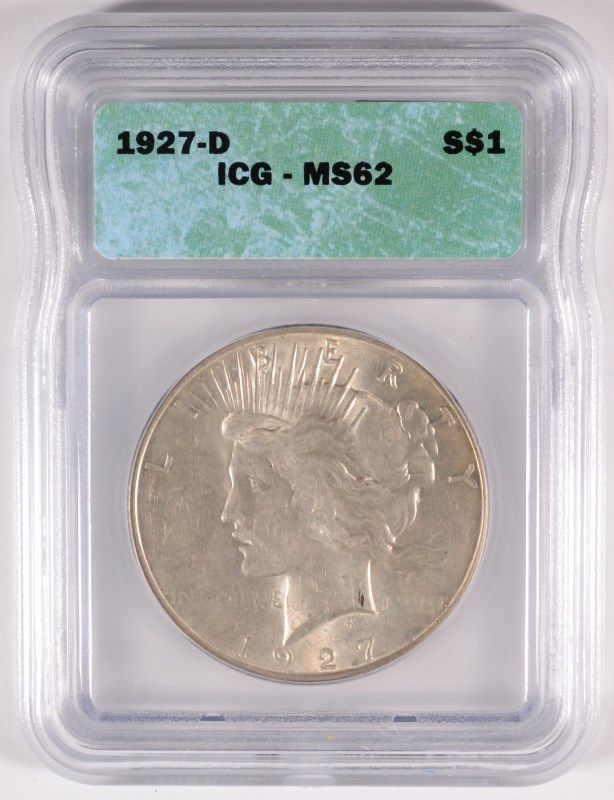 1927-D PEACE SILVER DOLLAR, ICG MS-62 SEMI-KEY COIN!