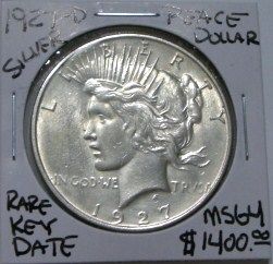 1927-D PEACE SILVER DOLLAR RED BOOK VALUE IS $1400.00 *EXTREMELY RARE KEY DATE MS-64 HIGH GRADE*!! ***Coin, Currency & All Items Listed in this auction - Grades, Conditions and Values are not Safe Deposit Coins LLC Responsibilty. Grades, Condition and Values are determined by Consigner(s) & Buyers ONLY