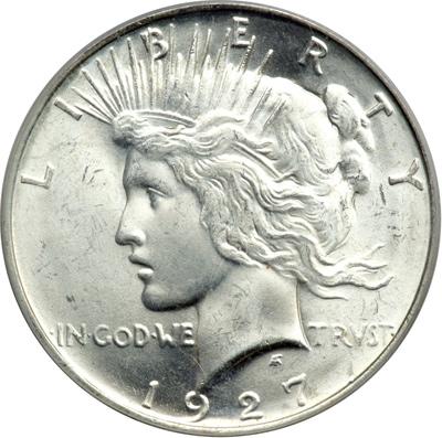 1927-D Peace Dollar. PCGS graded MS-64. Primarily untoned. A sparkling coin with silvery, no-nonsense surfaces and a commanding strike (PCGS # 7371) .