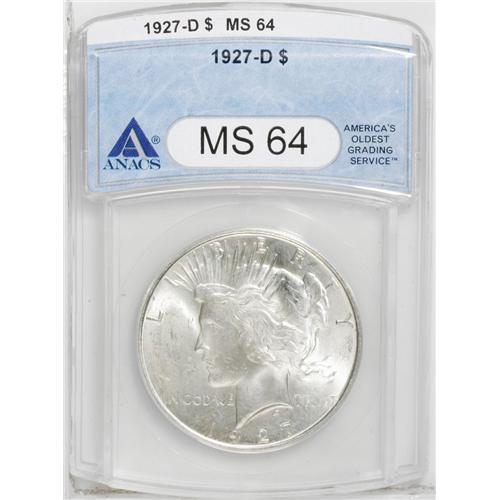 1927-D S$1 MS64 ANACS. A nicely struck near-Gem with p