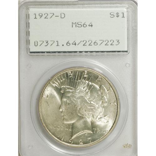1927-D S$1 MS64 PCGS. David Bowers (2006) writes that