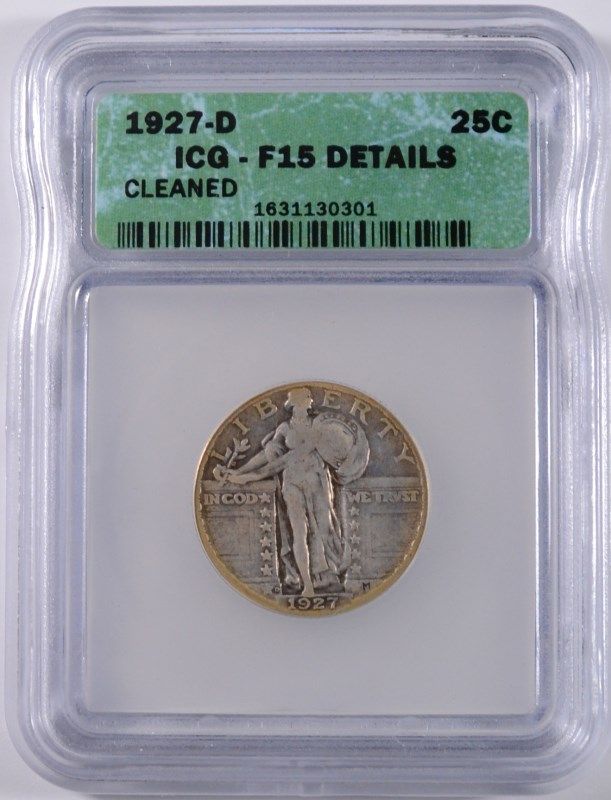 1927-D STANDING LIBERTY QUARTER, ICG FINE-15 cleaned