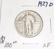 1927-D STANDING LIBERTY SILVER QUARTER RED BOOK VALUE IS $100.00 *RARE KEY DATE-NICE SILVER QUARTER*!! ***Coin, Currency & All Items Listed in this auction - Grades, Conditions and Values are not Safe Deposit Coins LLC Responsibilty. Grades, Condition and Values are determined by Consigner(s) & Buyers ONLY***