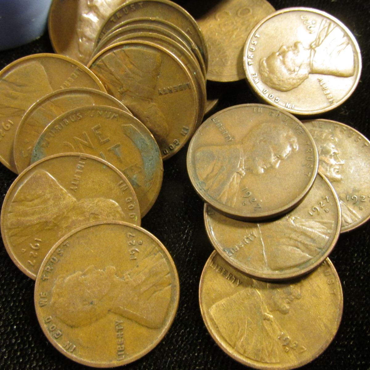 1927 D Solid-date Roll of Lincoln Cents (more than 50 pcs.) Grades up to Very Fine.