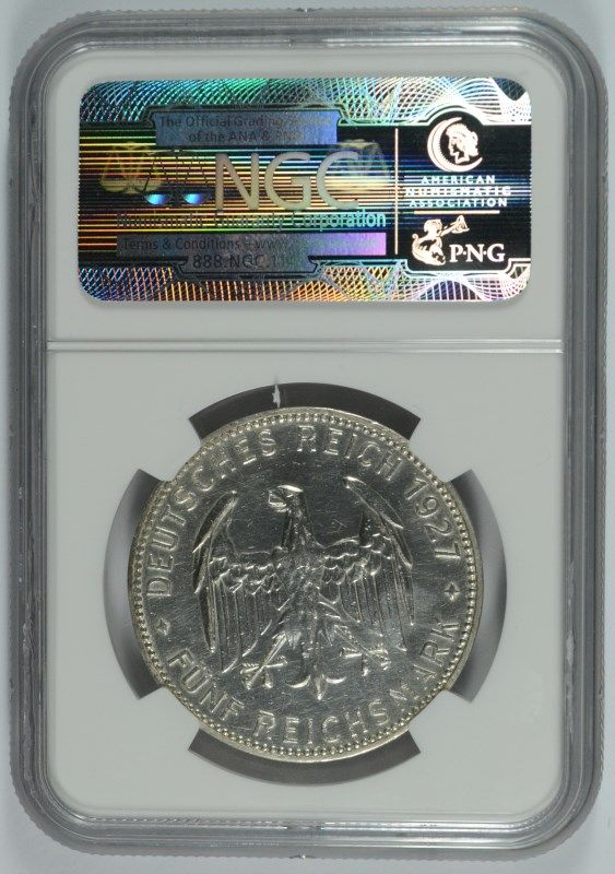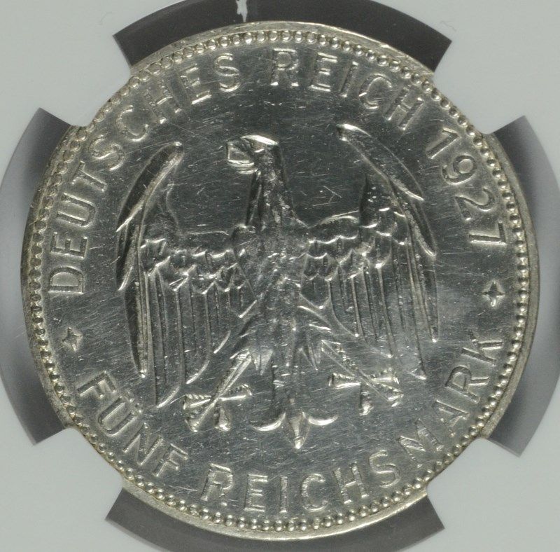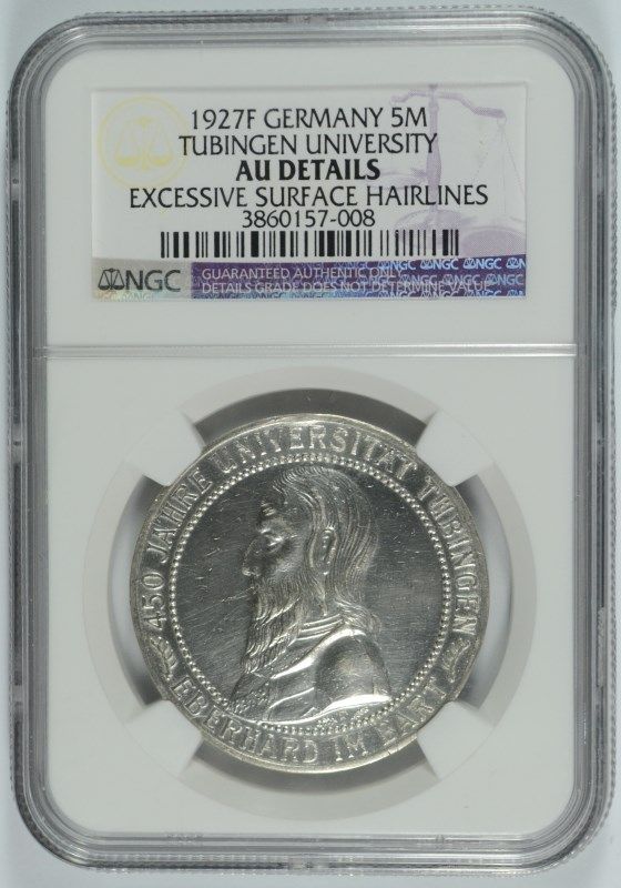 1927 GERMAN 5 MARK TUBINGEN UNIVERSITY, WEIMAR GERMANY, NGC AU DETAILS