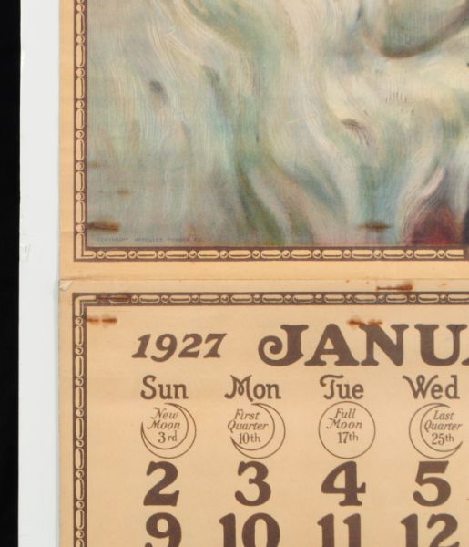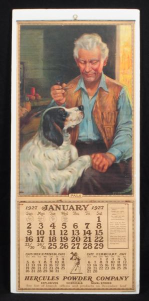 1927 Hercules Powder Calendar "Pals" Full Pad, Upper Band Intact. Image Measures 13" x 29.5"