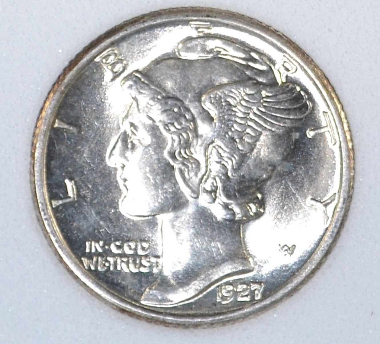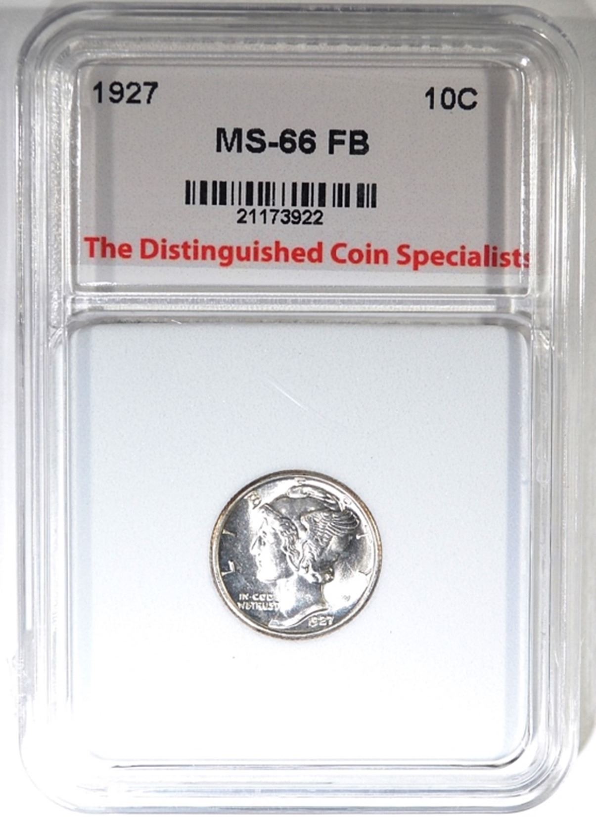 1927 MERCURY DIME, TDCS SUPERB GEM BU FB