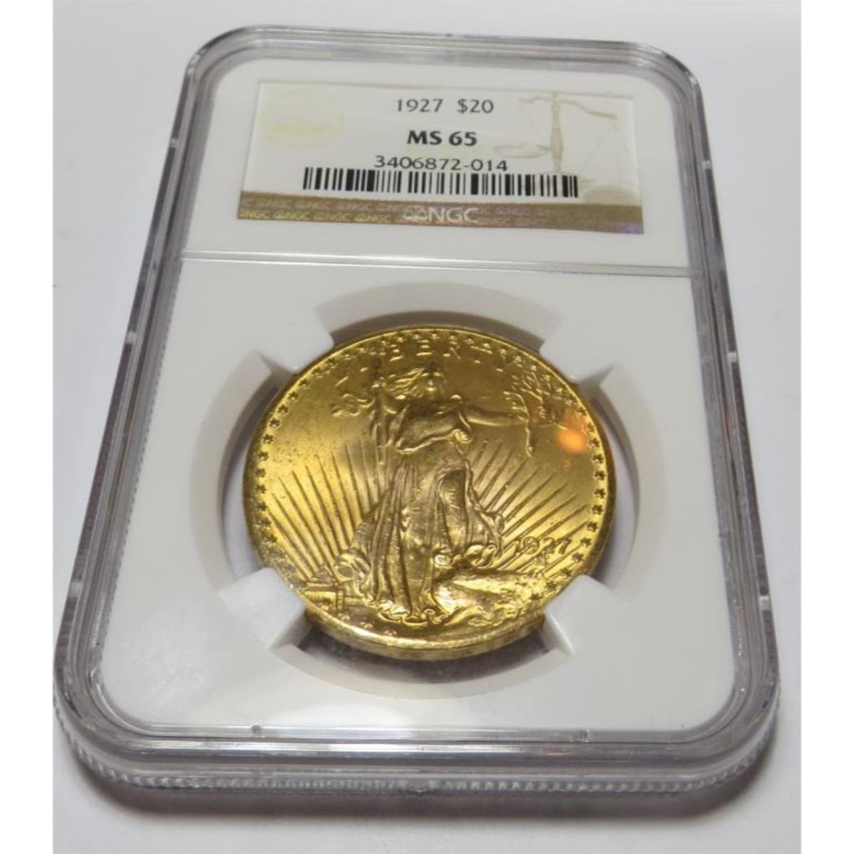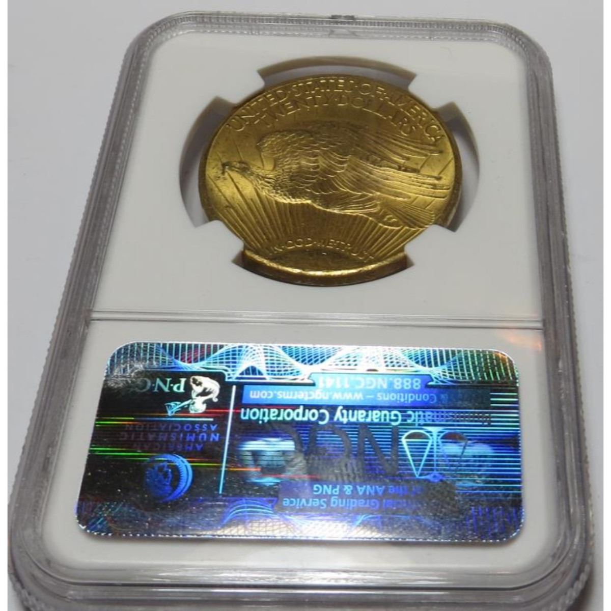 The Saint-Gaudens double eagle is a twenty-dollar gold coin, or double eagle, produced by the United States Mint from 1907 to 1933. The coin is named after its designer, the sculptor AugustusSaint-Gaudens, who designed the obverse and reverse. It is considered by many to be the most beautiful of U.S. coins.