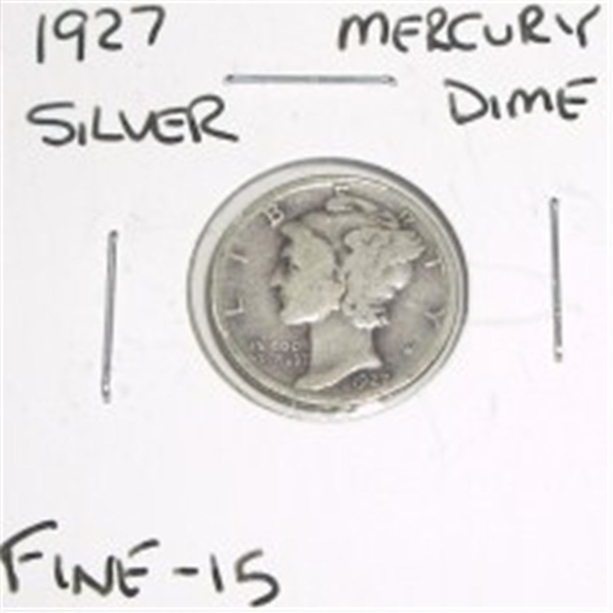 1927 Mercury SILVER Dime *FINE-15 GRADE*!! ***Coin, Currency & All Items Listed in this auction - Grades, Conditions and Values are not Safe Deposit Coins LLC Responsibilty. Grades, Condition and Values are determined by Consigner(s) & Buyers ONLY***