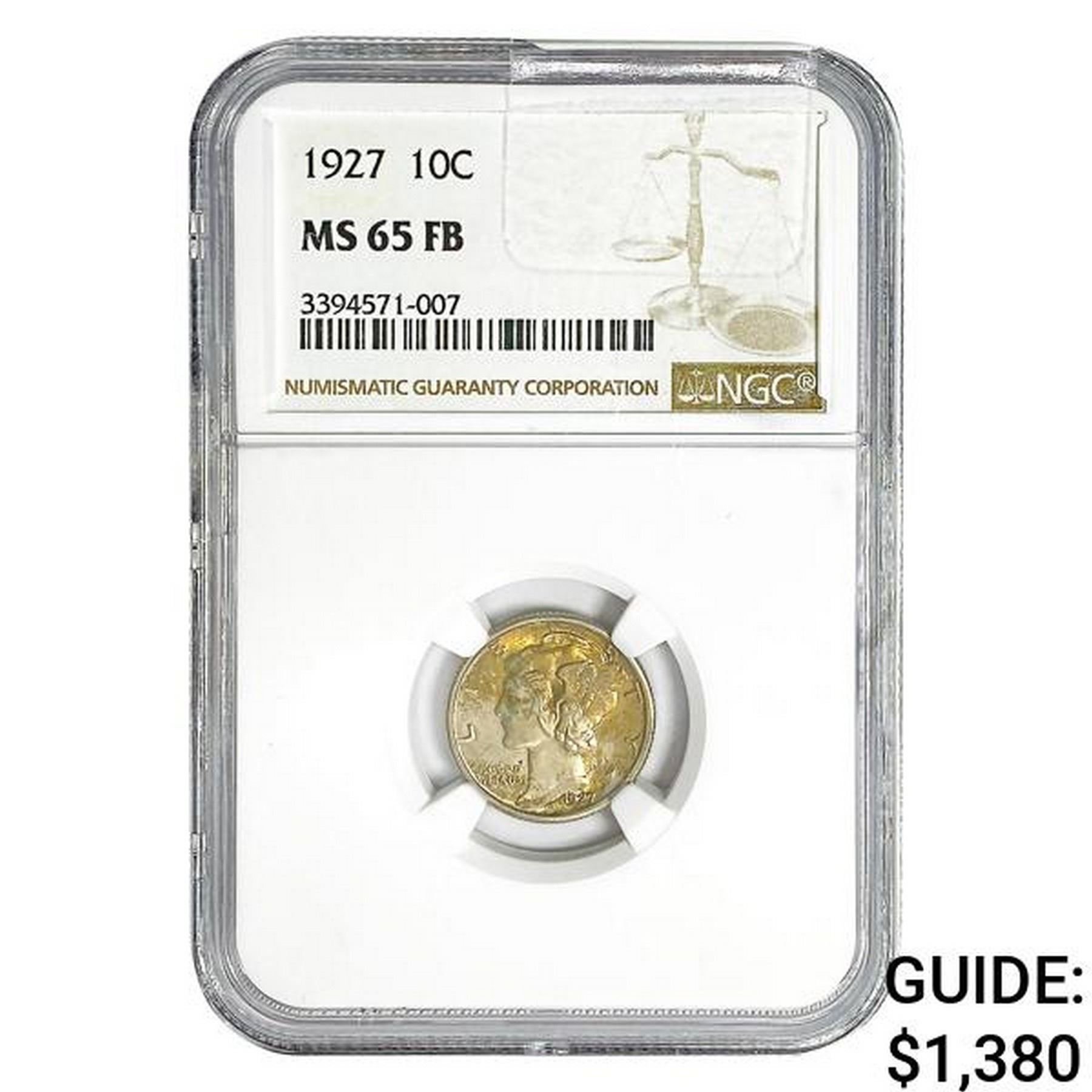 1927 Mercury Silver Dime NGC MS65 FB