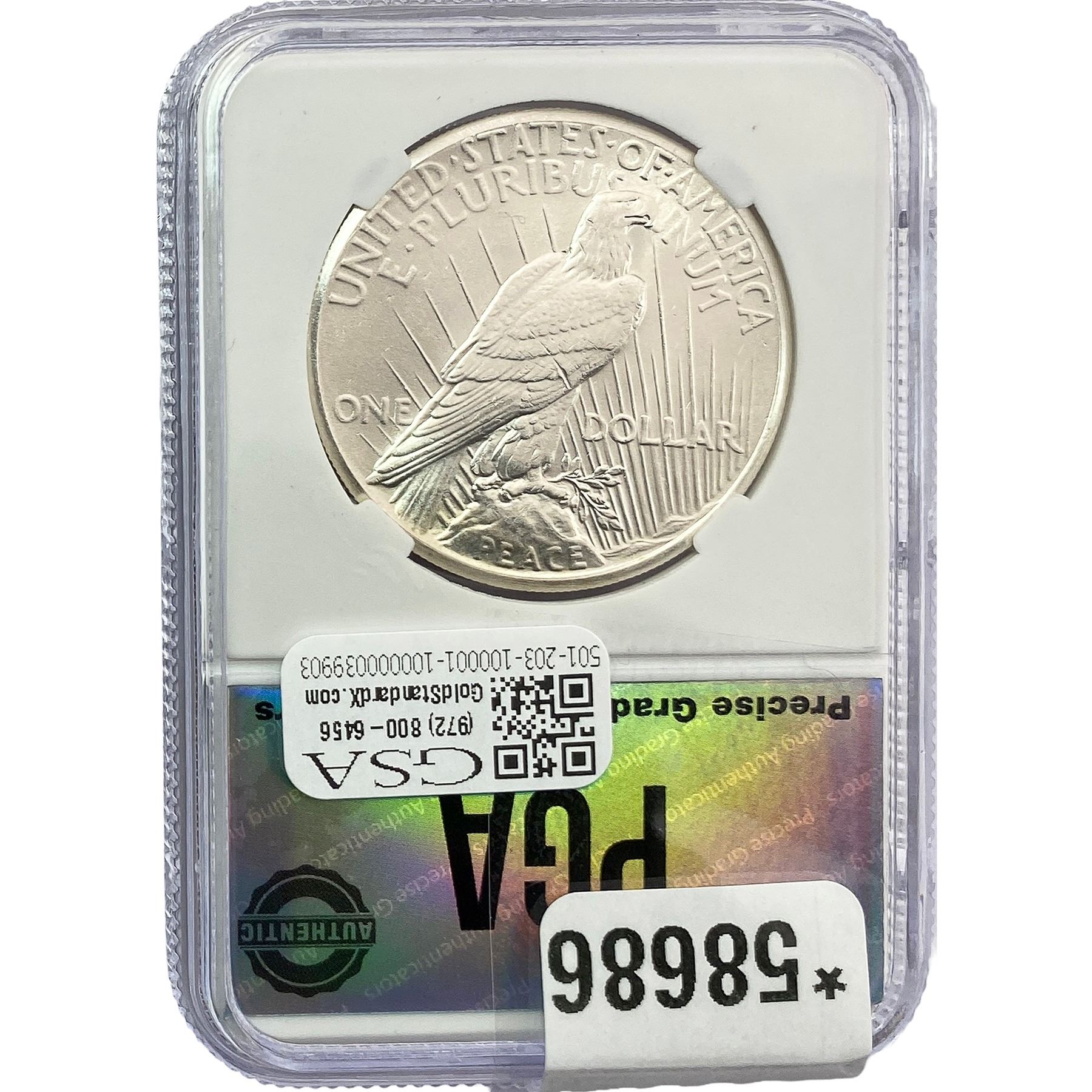 e. Coins sold referencing a third-party grading service are sold “AS IS” without any express or implied warranty, except for a guarantee by GSA that they are genuine. Removal or alteration of the holder, voids all of Bidder’s claims concerning that Product. Certain warranties may be available from the grading services and Bidders are referred to them for further details: Numismatic Guaranty Corporation (NGC), PO Box 4776, Sarasota, FL 34230, www.ngccoin.com/services/writtenguarantee.asp; Professional Coin Grading Services (PCGS), PO Box 9458, Newport Beach, CA 92658, www.pcgs.com/guarantee.html; ANACS, 6555 S. Kenton St., Ste. 303, Englewood, CO 80111; and Independent Coin Grading Co. (ICG), 7901 East Bellview, Ave., Suite 50, Englewood, CO 80111.