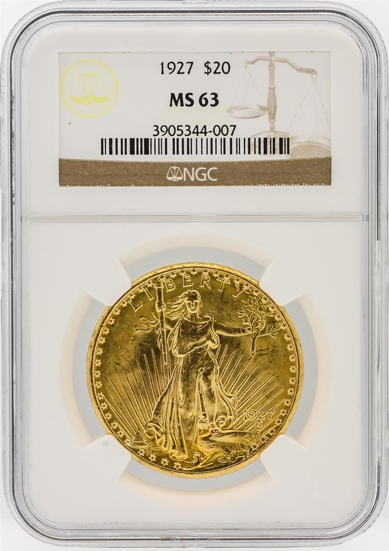 One 1927 NGC MS63 $20 St. Gaudens Double Eagle Gold Coin. NGC Certified.