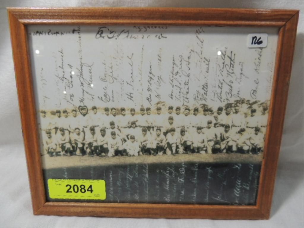 FRAMED 1927 NY YANKEES TEAM PHOTO WITH SIGNATURES. REPRINT. AS SHOWN. SEE PHOTO FOR DETAILS.