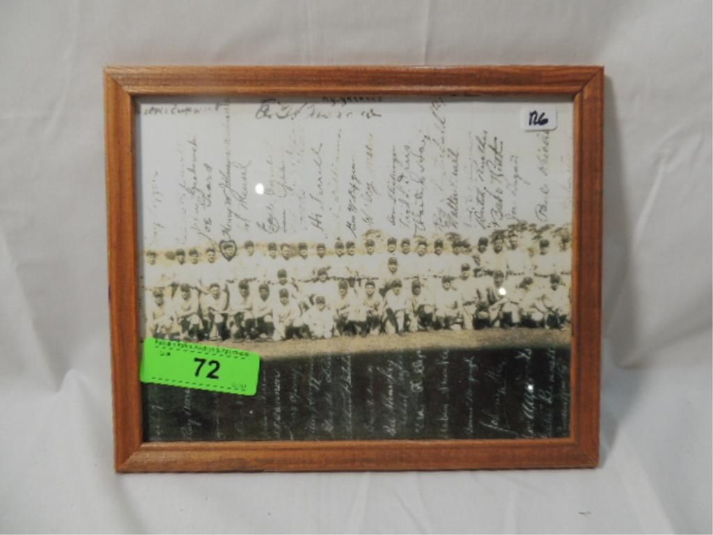 FRAMED 1927 NY YANKEES TEAM PHOTO WITH SIGNATURES. REPRINT. AS SHOWN. SEE PHOTO FOR DETAILS.