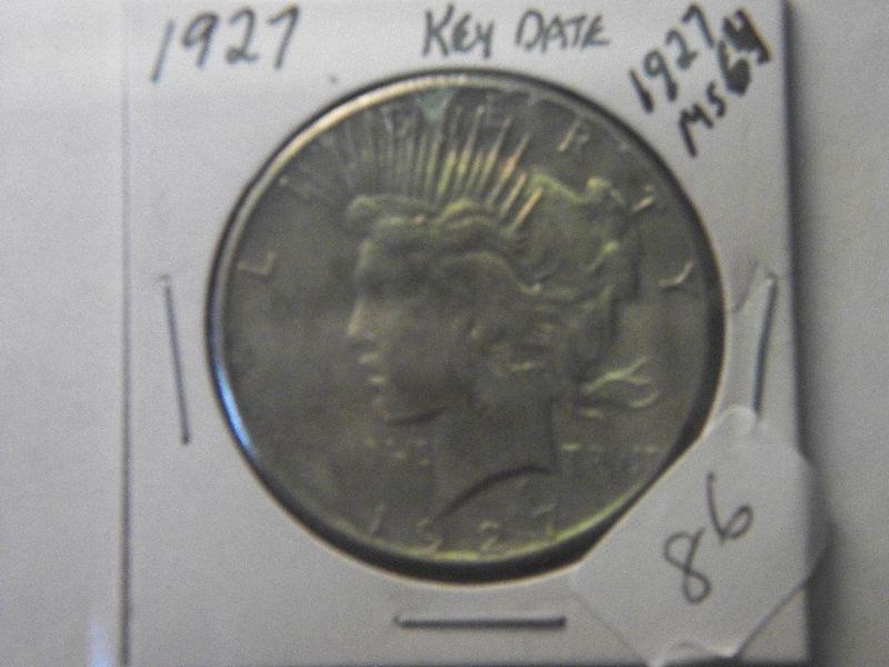 1927-P MS-64 PEACE DOLLAR TONED KEY DATE