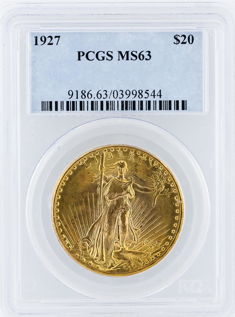 One 1927 PCGS MS63 $20 St. Gaudens Double Eagle Coin. PCGS Certified.