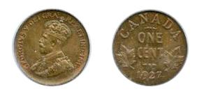 1927. PCGS graded Mint State-64. Brown. 20% luster.