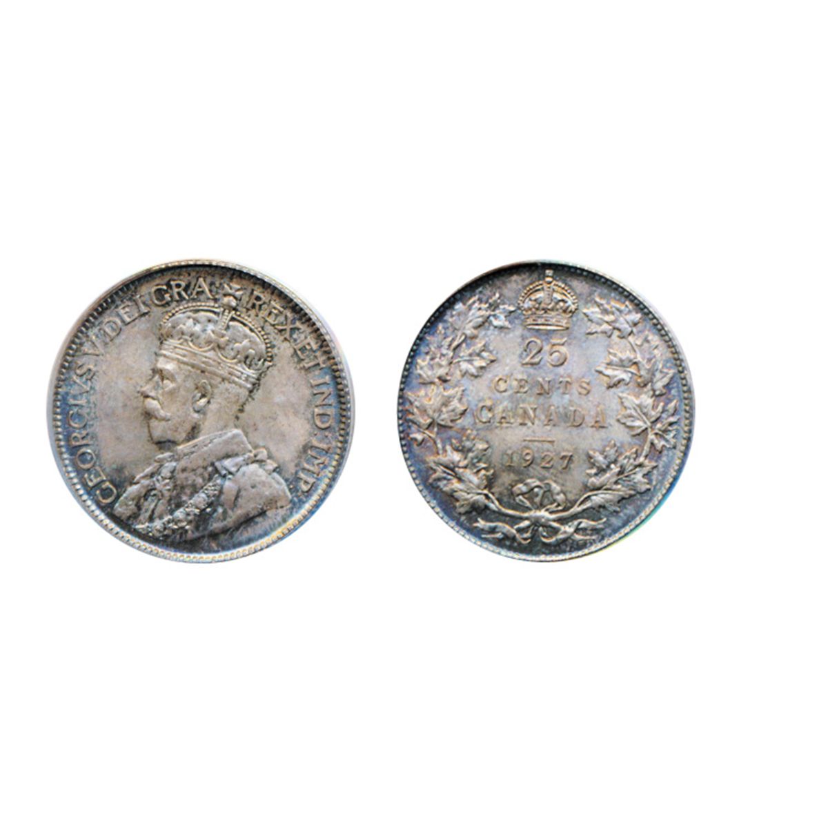1927. PCGS graded Mint State-65. Green-gold and sage toning with silver-blue highlights. A Gem, with excellent ‘eye appeal’. Tied for the second highest graded by PCGS.