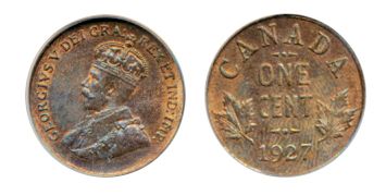 1927. PCGS graded Mint State-65. Red-Brown. 30% red luster.