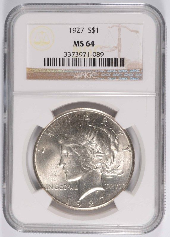 1927 PEACE SILVER DOLLAR, NGC MS-64 BLAST WHITE!!!
