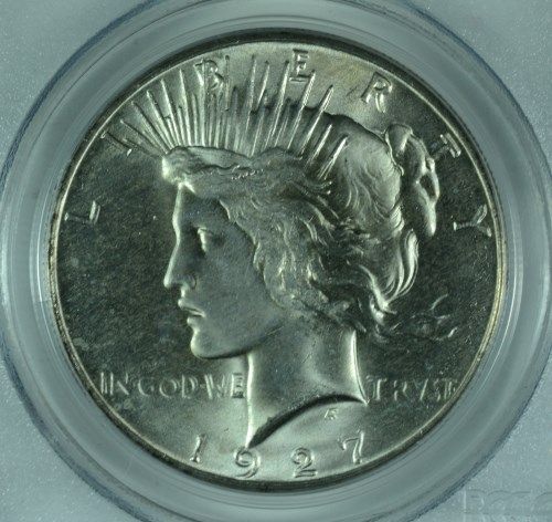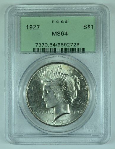 1927 PEACE SILVER DOLLAR, PCGS MS-64, GREEN LABEL , LOOKS MS-65 TO ANYONE!!