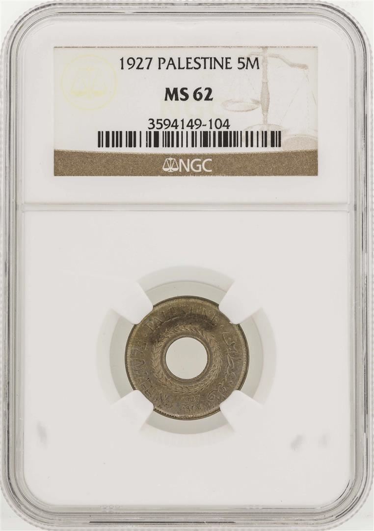 One 1927 Palestine 5 Mil Coin NGC MS62. NGC Certified.