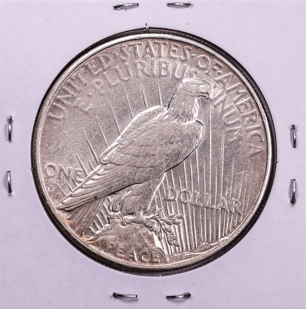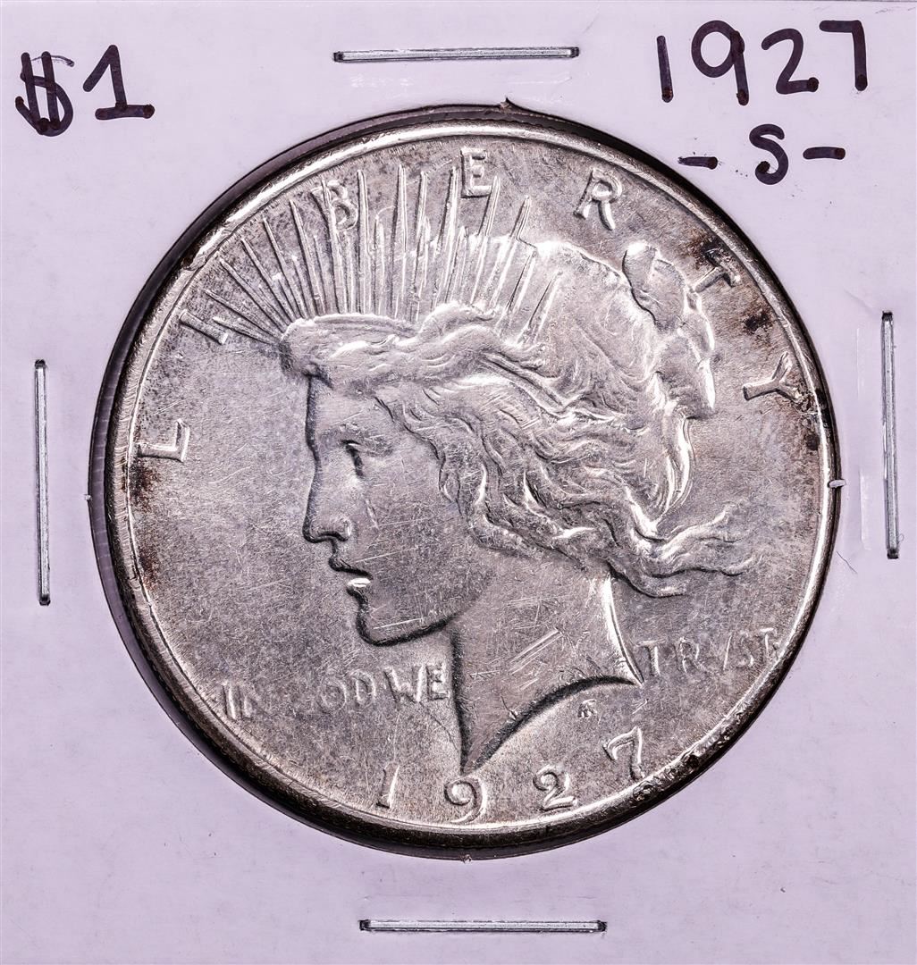 One 1927-S $1 Peace Silver Dollar Coin.