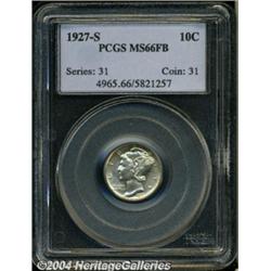 <B>1927-S<10C> MS66 Full Bands PCGS.</B></I> High quality date collectors would be wise to pay special attention when this conditionally rare premium Gem crosses the auction block. Lange (1993) asserts that fully struck, Gem quality 1927-S dimes are among the keys to this highly collectible series. This coin presents a satiny finish beneath a light blush of pastel-gold tinted iridescence. The peripheral devices are equally as crisp as the central highpoints, and the surfaces are smooth throughout without any singularly mentionable contact marks. Both major grading services report a mere nine examples at the present grade level, and there is not a single coin finer (7/04). <BR><BR><B>Important notice:</B> Heritage usually auctions material at the rate of 200-250 lots per hour. On some occasions eBay Live bid software or the Internet may not be able to keep up with the pace of the auction. We recommend placing a realistic absentee bid now as insurance to avoid disappointment. Occasionally the auctioneer may eliminate or reject an eBay Live bid, and the auctioneer may also reopen a lot after the close of the eBay live bidding (usually because we missed an audience bid), and may reject your bid even if it shows you as the winning bidder. By bidding via eBay Live, you agree that Heritage may award the lot to another bidder at its sole discretion under the circumstances described above or any other reasonable circumstances. Since eBay bids are not shown to us until we open the lot on the floor, we treat those bids just like floor bids. In most cases the floor responds before the eBay bid is presented to us, due to Internet lag time, so for consistency we have made it a policy that floor bids are always considered first over tie eBay live bids. Also please note that all Heritage lots purchased through eBay Live carry a 20% Buyer's Premium. Please make sure you read the Terms and Conditions before you bid. </span></font></tr></table></td></tr></table>