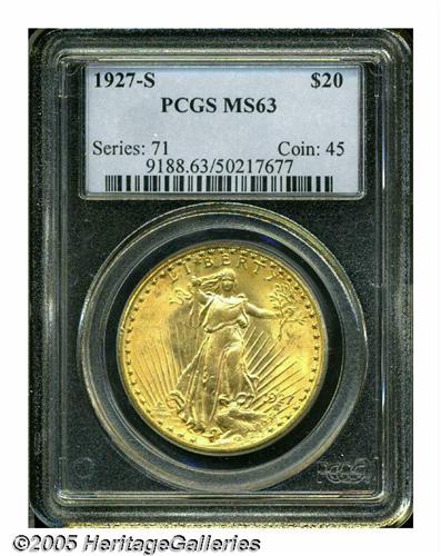 1927-S $20 MS63 PCGS. During the 1940s, collector