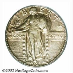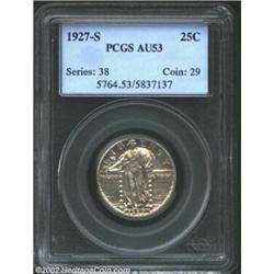 1927-S 25C AU53 PCGS. A lightly and evenly worn example of this rare key issue, the surfaces are bright and each side has a light accent of russet toning. There are no obvious or detracting abrasions on either side. Sure to be placed in a high grade set of Standing Liberty Quarters. Important notice: We expect to be auctioning lots at the rate of 200-250 per hour. Sometimes eBay Premier live bid software cannot keep up with that pace, so we strongly recommend that you place a realistic proxy bid now as insurance to avoid disappointment. Also please note that all Heritage/CAA lots purchased through eBay Premier carry a 20% Buyer's Premium. Please make sure you read the Terms and Conditions.