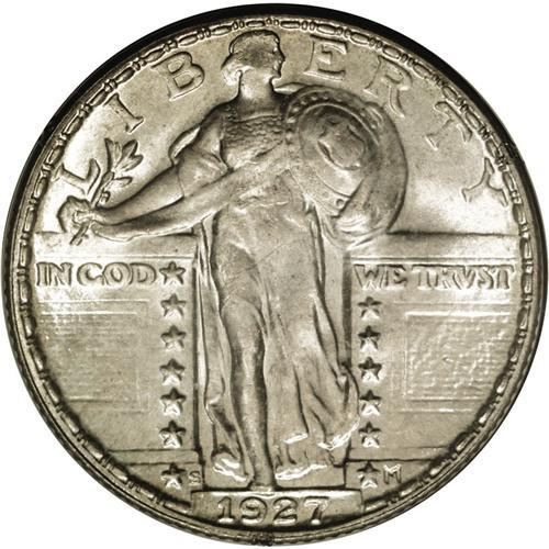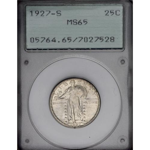 1927-S 25C MS65 PCGS. With a meager mintage of 396,000 1927-S[25C] MS65 PCGS.