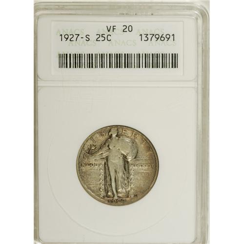 1927-S 25C VF20 ANACS. NGC Census: (146/578). PCGS
