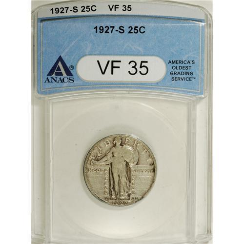 1927-S 25C VF35 ANACS. NGC Census: (146/286). PCGS