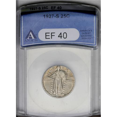 1927-S 25C XF40 ANACS. Evenly worn and lightly toned, 1927-S[25C] XF40 ANACS.