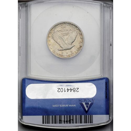<B>1927-S<25C> XF40 ANACS.</B></I> Evenly worn and lightly toned, with tan and gold peripheral toning that complements the medium-gray central coloration. A pleasing, essentially abrasion-free example of this low-mintage key date.