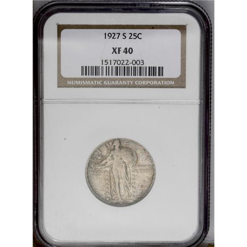 1927-S 25C XF40 NGC. Residual mint luster still clings 1927-S[25C] XF40 NGC.