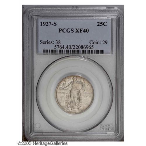 <B>1927-S<25C> XF40 PCGS.</B></I> Showing 20 points of wear, some luster still is seen in the crevices. A couple of small marks are noted on the eagle's breast. Still, a worthwhile higher grade example.