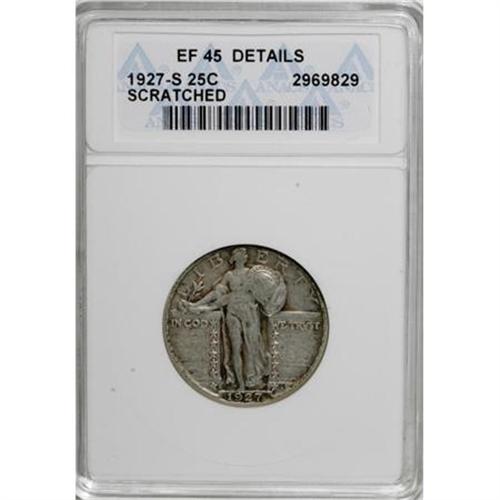 <B>1927-S 25C --Scratched--ANACS. XF45 Details.</B></I> NGC Census: (44/205). PCGS Population (65/351). Mintage: 396,000. Numismedia Wsl. Price for NGC/PCGS coin in XF45: $1331. <BR><BR><BR><B>Coin Engraver:</B> Hermon A. MacNeil<BR><BR><b>Shipping:</b> Coins & Currency (<a target="_blank" href="http://www.heritageauctions.com/common/shipping.php">view shipping information</a>)