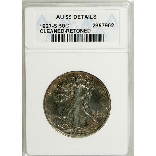 1927-S 50C --Cleaned, Recolored--ANACS. AU55 Details.