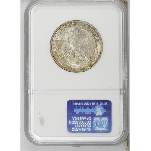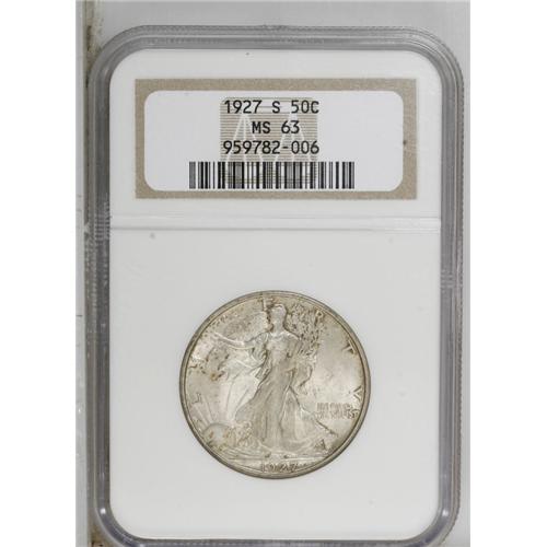 1927-S 50C MS63 NGC. Wisps of olive-green are somewhat