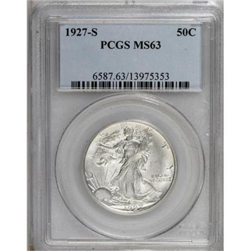 <B>1927-S 50C MS63 PCGS.</B></I> A luminous and appealing Select example of this desirable San Francisco issue, lightly marked overall with pleasing surface quality otherwise. The central devices exhibit the softness typical of branch mint pieces from the Roaring Twenties.<BR><BR><B>Coin Engraver:</B> Adolph A. Weinman<BR><BR><b>Shipping:</b> Coins & Currency (<a target="_blank" href="http://www.heritageauctions.com/common/shipping.php">view shipping information</a>)