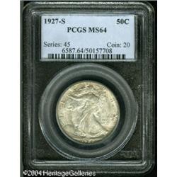 1927-S 50C MS64 PCGS. A very elusive early Walker, 1927-S 50C MS64 PCGS.