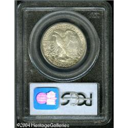 1927-S 50C MS64 PCGS. A very elusive early Walker, <B>1927-S 50C MS64 PCGS.</B></I> A very elusive early Walker, and one that is seldom seen with a sharp strike or carefully preserved surfaces. The striking definition of this coin is above average, and the mostly brilliant features display a light amount of silver-gray color. There are two to three moderate blemishes on each side that define the coin's grade. <BR><BR><B>Important notice:</B> Heritage usually auctions material at the rate of 200-250 lots per hour. On some occasions eBay Live bid software or the Internet may not be able to keep up with the pace of the auction. We recommend placing a realistic absentee bid now as insurance to avoid disappointment. Occasionally the auctioneer may eliminate or reject an eBay Live bid, and the auctioneer may also reopen a lot after the close of the eBay live bidding (usually because we missed an audience bid), and may reject your bid even if it shows you as the winning bidder. By bidding via eBay Live, you agree that Heritage may award the lot to another bidder at its sole discretion under the circumstances described above or any other reasonable circumstances. Since eBay bids are not shown to us until we open the lot on the floor, we treat those bids just like floor bids. In most cases the floor responds before the eBay bid is presented to us, due to Internet lag time, so for consistency we have made it a policy that floor bids are always considered first over tie eBay live bids. Also please note that all Heritage lots purchased through eBay Live carry a 20% Buyer's Premium. Please make sure you read the Terms and Conditions before you bid. This lot is being auctioned in conjunction with a live floor auction by Heritage Galleries & Auctioneers. All final auction and invoice information will be supplied by Heritage Galleries & Auctioneers, and all other information should be considered preliminary. Lot:6169