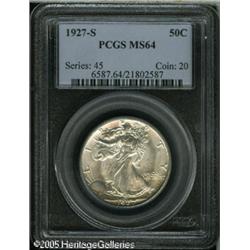 <B>1927-S 50C MS64 PCGS.</B></I> In addition to this near-Gem's bright, satiny sheen, the lilac and golden-tinged surfaces exhibit a surprisingly bold strike for the issue.<BR><I>From The William & Harrison Hiatt Registry Collection, Part Two.</B></I> Lot:8003