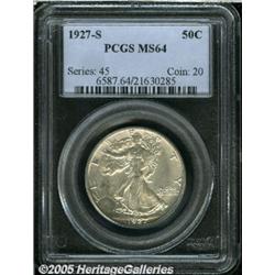 <B>1927-S 50C MS64 PCGS.</B></I> Relatively clean surfaces with delicate russet toning just beginning to form over each side. The strike is considerably above-average for this rarely saved issue.