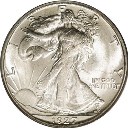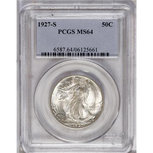 <B>1927-S<50C> MS64 PCGS.</B></I> This coin is lustrous and untoned, with well defined central devices for this normally substandard 1920s San Francisco issue. A faint pinscratch runs horizontally across from the Y in LIBERTY, the most obvious deterrent to a Gem rating.