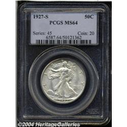 <B>1927-S<50C> MS64 PCGS.</B></I> A shimmering gunmetal-gray near-Gem that has a reasonable strike and few faint freckles of tan patina on the reverse field. A couple of obverse ticks are detected upon thorough examination, but the surfaces are on the whole very attractive for the assigned grade. <BR><BR><B>Important notice:</B> Heritage usually auctions material at the rate of 200-250 lots per hour. On some occasions eBay Live bid software or the Internet may not be able to keep up with the pace of the auction. We recommend placing a realistic absentee bid now as insurance to avoid disappointment. Occasionally the auctioneer may eliminate or reject an eBay Live bid, and the auctioneer may also reopen a lot after the close of the eBay live bidding (usually because we missed an audience bid), and may reject your bid even if it shows you as the winning bidder. By bidding via eBay Live, you agree that Heritage may award the lot to another bidder at its sole discretion under the circumstances described above or any other reasonable circumstances. Since eBay bids are not shown to us until we open the lot on the floor, we treat those bids just like floor bids. In most cases the floor responds before the eBay bid is presented to us, due to Internet lag time, so for consistency we have made it a policy that floor bids are always considered first over tie eBay live bids. Also please note that all Heritage lots purchased through eBay Live carry a 20% Buyer's Premium. Please make sure you read the Terms and Conditions before you bid. </span></font></tr></table></td></tr></table>