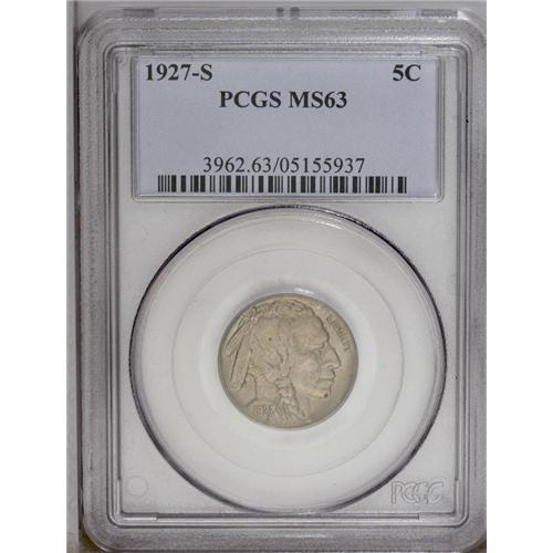 <B>1927-S<5C> MS63 PCGS.</B></I> A well struck example of this scarce and often-overlooked issue from the 1920s. The surfaces show subdued gray-brown patina and there are numerous, grade-limiting specks of carbon on the obverse. Population: 134 in 63, 235 finer (2/06).