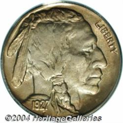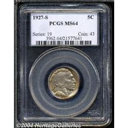 <B>1927-S<5C> MS64 PCGS.</B></I> Due to the rather pronounced rarity of Gem condition coins from this issue, near-Gem examples like this one occupy a more prominent place in the Buffalo nickel marketplace than they might otherwise enjoy. The surfaces are boldly struck, with even the letters of LIBERTY and the bison's head and tail all showing strong definition. The satiny surfaces are minimally abraded, and display a narrow ring of rainbow toning around the borders on each side. A solid near-Gem example of this scarce date, which is hard to find better than VF. <BR><BR><B>Important notice:</B> Heritage usually auctions material at the rate of 200-250 lots per hour. On some occasions eBay Live bid software or the Internet may not be able to keep up with the pace of the auction. We recommend placing a realistic absentee bid now as insurance to avoid disappointment. Occasionally the auctioneer may eliminate or reject an eBay Live bid, and the auctioneer may also reopen a lot after the close of the eBay live bidding (usually because we missed an audience bid), and may reject your bid even if it shows you as the winning bidder. By bidding via eBay Live, you agree that Heritage may award the lot to another bidder at its sole discretion under the circumstances described above or any other reasonable circumstances. Since eBay bids are not shown to us until we open the lot on the floor, we treat those bids just like floor bids. In most cases the floor responds before the eBay bid is presented to us, due to Internet lag time, so for consistency we have made it a policy that floor bids are always considered first over tie eBay live bids. Also please note that all Heritage lots purchased through eBay Live carry a 20% Buyer's Premium. Please make sure you read the Terms and Conditions before you bid. </span></font></tr></table></td></tr></table>